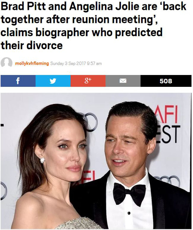 "Brad Pitt và Angelina Jolie đã quay lại với nhau sau cuộc hội ngộ, theo lời nhà văn viết tiểu sử từng dự đoán họ ly hôn"