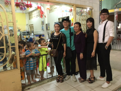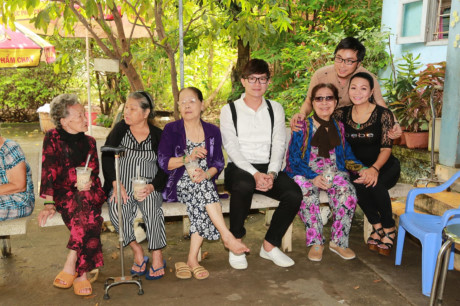 Bên cạnh đó, nữ nghệ sĩ cùng mẹ ruột, em họ chị là Nam vương Tiến Phạm, diễn viên Hòa Hiệp và các fans thực hiện chuyến thăm viện Dưỡng lão nghệ sĩ TP. HCM tại quận 8 và chùa Kỳ Quang 2 - nơi nuôi dưỡng trẻ em mồ côi khuyết tật.