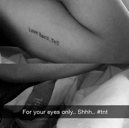 Christina Milian đã xăm một thông điệp tình yêu dành cho “TnT”, viết tắt của Tina ’n Tunechi, tượng trưng cho cô và chàng ca sĩ Lil’ Wayne.