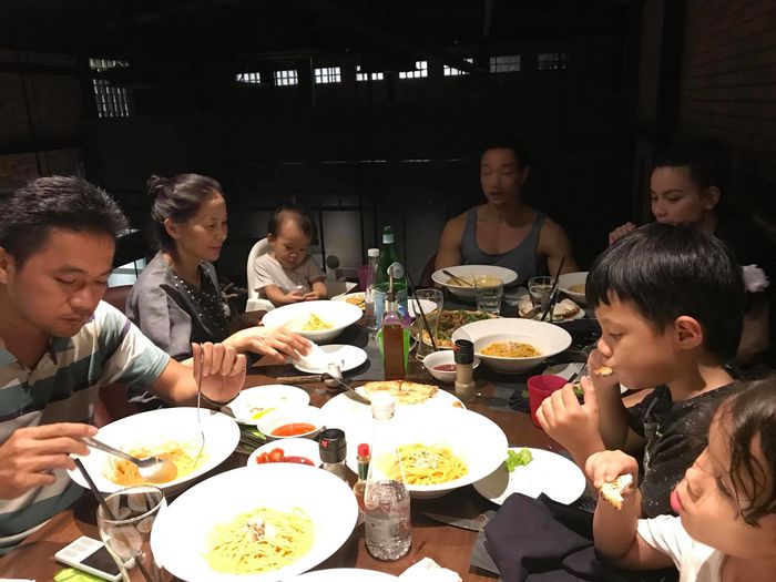 Nếu để ý kĩ trong bức hình, ta có thể thấy Hồ Ngọc Hà ngồi cạnh Kim Lý ở bàn ăn. Kim Lý diện áo ba lỗ màu ghi và tỏ ra rất vui vẻ khi được tận hưởng ngày cuối tuần với gia đình Hồ Ngọc Hà. Bữa tiệc cũng có con trai Hồ Ngọc Hà - Subeo, cậu bé tỏ ra rất hứng khởi.