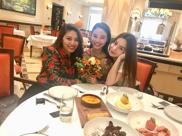 Hồ Ngọc Hà khoe ảnh đi ăn cùng bạn bè, trong hình xuất hiện bó hoa giống hệt bó hoa của Kim Lý.​