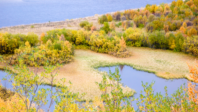 Bên cạnh màu lá vàng, sự đa dạng của cây lá rộng (bạch dương, du, sồi, phong...) và cây lá kim cũng như quả mọng và rêu trên mặt đất tạo nên những mảng màu xanh lá, nâu, xanh lam, đỏ và vàng sống động.