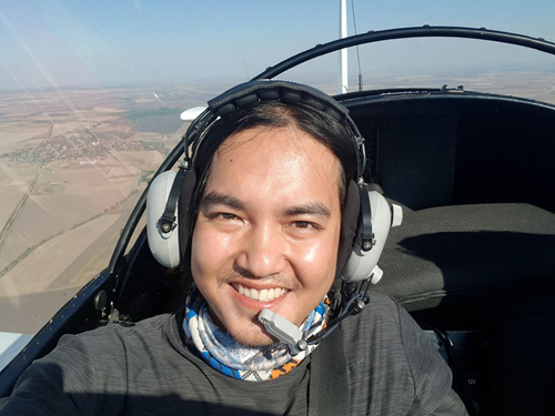 Làm phi công cũng là một ước mơ hồi nhỏ của Khoa và anh đă thực hiện được trên hành tŕnh này, khi đặt chân đến Bulgaria. Tại trung tâm giải trí hàng không Belozem, Khoa đăng kư gói trải nghiệm lái máy bay cánh quạt v́ biết giá rẻ bất ngờ, 50 leva (750.000 đồng) cho 10 phút bay. Do ít khách nên các nhân viên ở đây cho phép anh trải nghiệm 30 phút với giá 50 leva và hướng dẫn thao tác bay, đổi hướng, tăng giảm độ cao cơ bản. Là fan của game máy bay nên khi được ngồi trên buồng lái chiếc máy bay thực thụ, Khoa không tránh khỏi cảm giác lâng lâng, sung sướng.