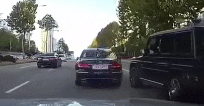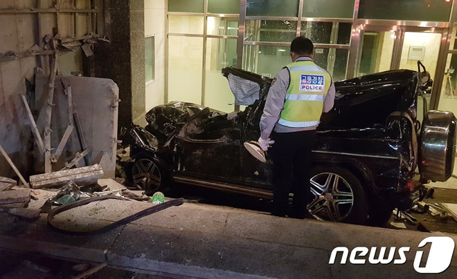 Chiếc Mercedes SUV (màu đen) do Kim Joo Hyuk điều khiển có dấu hiệu đi chững lại trước khi lao thẳng một chiếc xe khác đi cùng chiều. Chiếc xe màu đen bị lệch tay lái, đâm vào tường và lật xe.