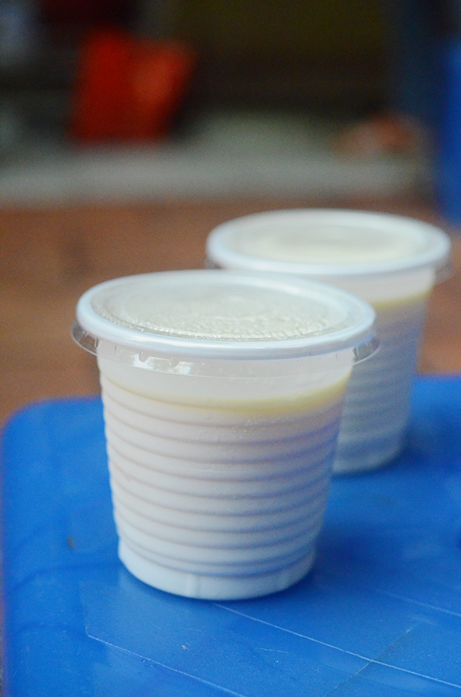 Bà Hồng, chủ quán (ngồi trái) thẳng thắn cho hay: “Tính tôi vốn hơi nóng, do quán đông, làm không kịp tay mà bị còn bị hối nên đôi khi tôi có hơi cáu”. Với nhiều khách quen đã biết ý sẽ tự tìm chỗ ngồi khi đến quán, gọi một chén bánh đúc rồi chờ đợi.