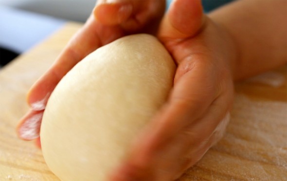 7. Mở nắp ra. Nhồi bột thật mịn màng cho tới khi cục bột trở thành một quả banh tròn và nhẵn thín.