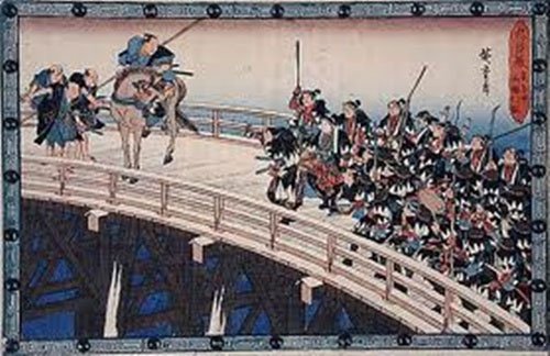Khi ghé thăm Edo (Tokyo hiện nay), Naganori Asano đã dùng gươm gây thương tích cho Kira Yoshinaka, sau khi tranh cãi nổ ra giữa 2 người. Nhà cầm quyền quyết định buộc Naganori phải mổ bụng tự sát. Tất nhiên, ông không còn lựa chọn nào khác ngoài việc thực thi.