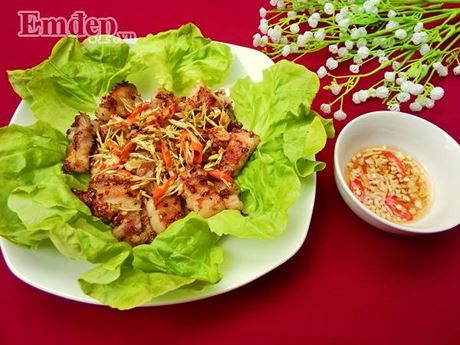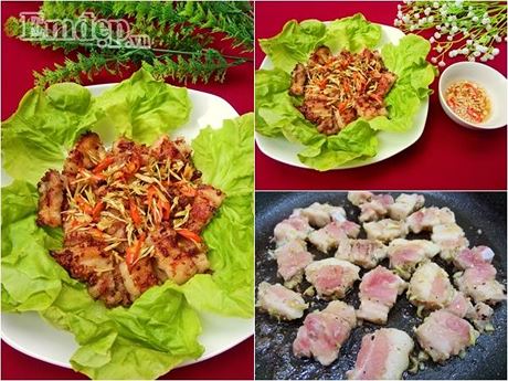 Miếng thịt đậm đà thơm nồng mùi sả cộng với vị cay của ớt chấm cùng nước mắm gừng chua ngọt khiến cho món ăn trở nên vô cùng hấp dẫn.