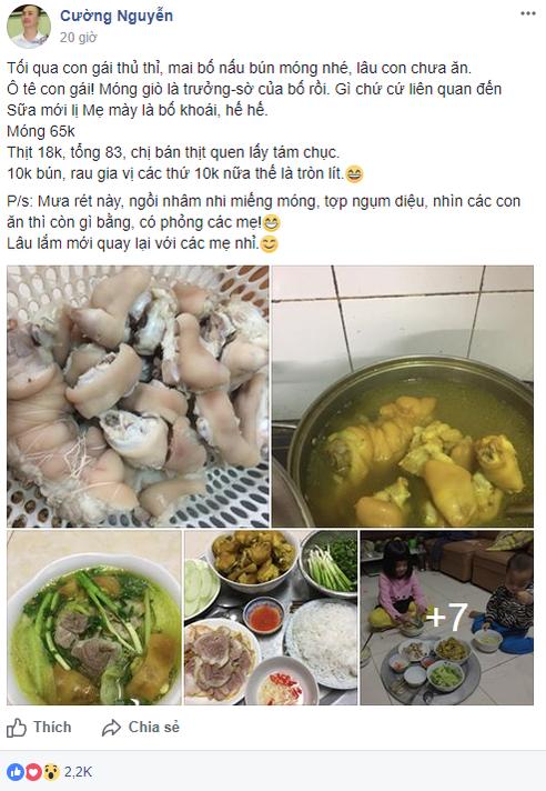 Chỉ sau chưa đầy một ngày chia sẻ, món bún móng giò nấu cho con gái của anh Nguyễn Cường (Hà Nội) đã "gây sốt" trên mạng xã hội với hàng nghìn lượt like.