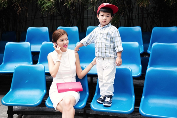 Old  Cool Hoa hậu Oanh Yến đưa cậu cả theo chân đi chụp hình