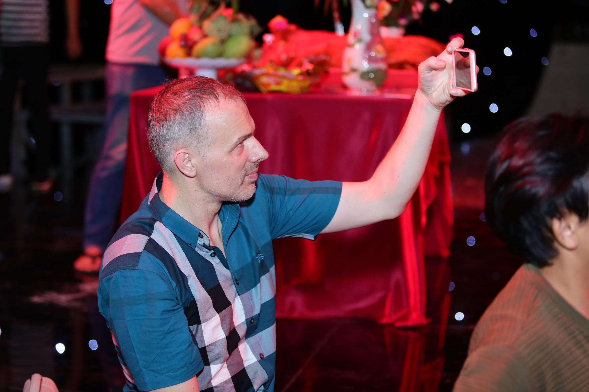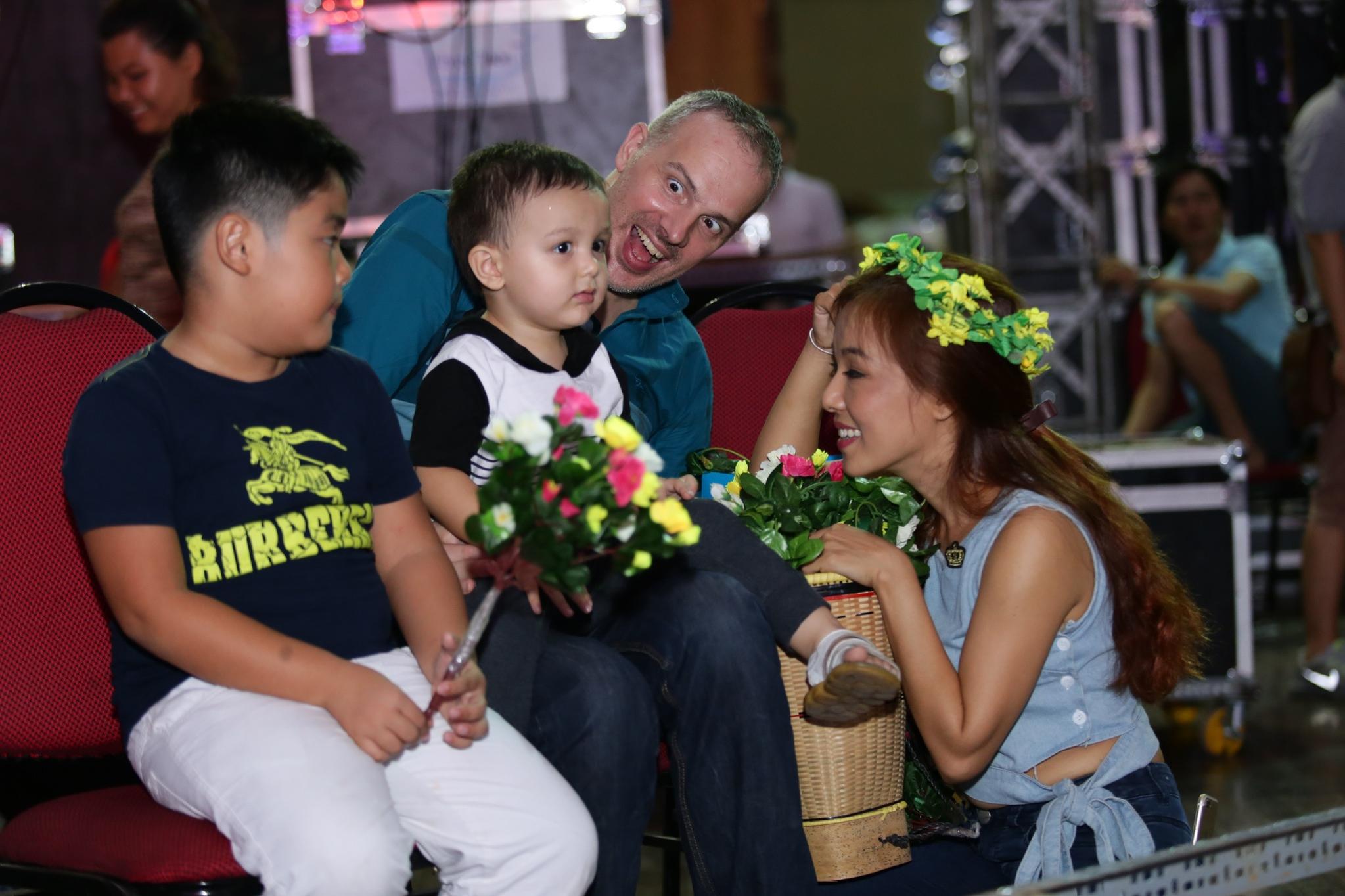 Trong buổi luyện tập, ráp tiết mục trên sân khấu, ông xã tương lai - Christiaan Romme – cùng hai con trai đưa cô đến tận trường quay.