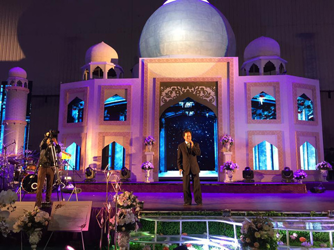 Hình ảnh danh ca Chế Linh hát trên sân khấu của "siêu đám cưới" tại Bắc Ninh