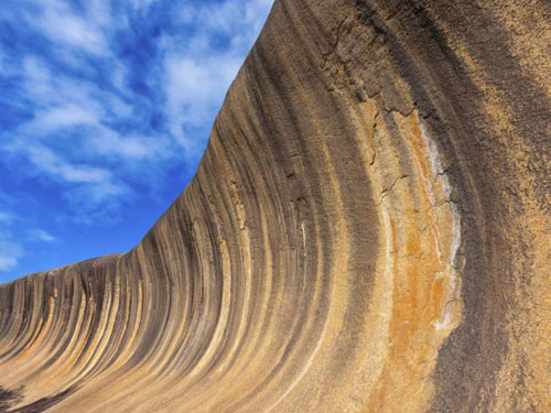 Wave Rock là một trong những địa hình nổi tiếng và đẹp nhất của Australia, với chiều cao 15 m, dài 110 m và có hình dáng uốn lượn như sóng. Khoáng chất trong những cơn mưa trút xuống Tây Australia hàng ngàn năm qua đã cho ra sắc đỏ và vàng xám độc đáo trên bề mặt của dãy đá này.
