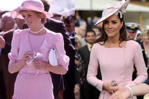 Dường như công nương Diana có bao nhiêu chiếc mũ thì Kate cũng có bấy nhiêu cái. Chưa kể là họ cùng sở hữu rất nhiều áo khoác dáng váy tiệp màu.