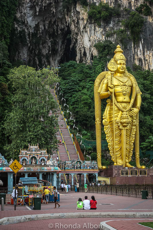 Bức tượng Lord Murugan nằm ở phía trước lối vào động Batu, nơi du khách sẽ phải leo lên 272 bậc thang để dẫn đến lối vào hang. Được xây dựng vào năm 2006, bức tượng Lord Murugan cao 42,7m được cho là lớn nhất trên thế giới. Giờ mở cửa hang Batu là từ 7 giờ sáng đến 8 giờ tối hằng ngày. Tốt nhất là đi sớm vào buổi sáng để tránh hơi nóng. Hãy nhớ rằng, bạn sẽ phải leo lên 272 bậc thang để vào động.