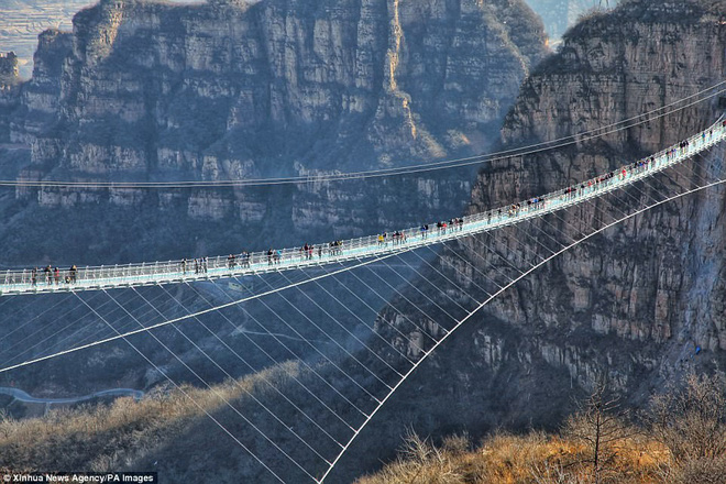 Một cây cầu kính mới mở tại tại tỉnh Hà Bắc, Trung Quốc đã thu hút khoảng 20,000 khách du lịch tới đây mỗi ngày để chiêm ngưỡng khung cảnh bên dưới từ độ cao 230m.
