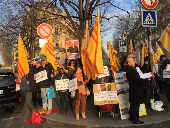 Old  vnch Ảnh cờ máu bị dẫm nát và Phú Trọng "biến" mất dép ở Paris