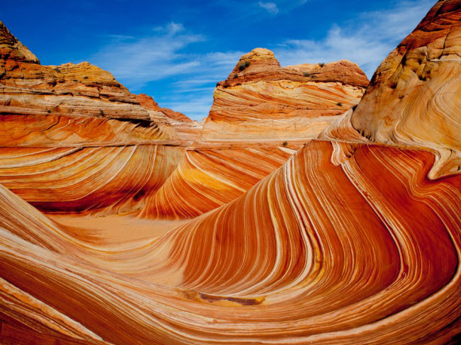 Cấu trúc đá sa thạch vô cùng ấn tượng mang tên Wave được hình thành qua thời kỳ hàng triệu năm tại khu vực Coyote Buttes ở bang Arizona. Nếu du khách muốn tham quan địa điểm này, cần mua xổ số hằng ngày để may mắn có được vé.