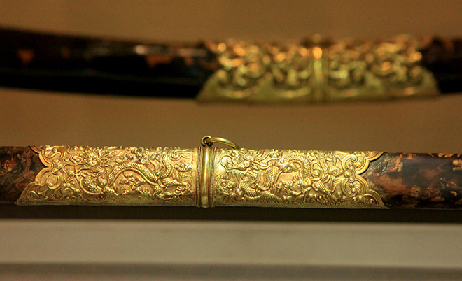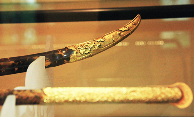 Triều Nguyễn, với 143 năm tồn tại (1802-1945) để lại cho cố đô Huế một di sản đồ sộ bao gồm cả di sản vật thể và phi vật thể có giá trị nổi bật trên thế giới. Một trong những bảo vật quý báu là hai cây kiếm của vua Khải Định. Hai cây kiếm này có chuôi vàng nạm đá quý, vỏ đồi mồi bọc vàng, chạm khắc tinh xảo đang được lưu giữ tại Bảo tàng Lịch sử Quốc gia (Hà Nội).
