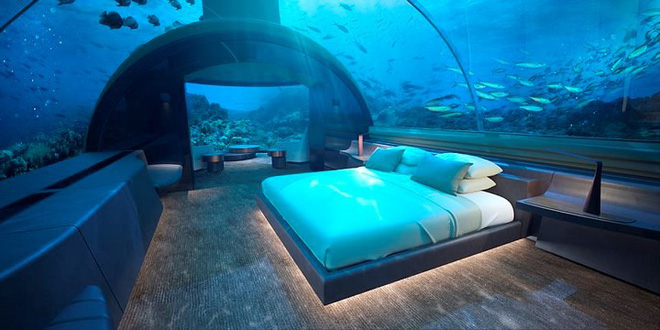 Vietbf.com - Du khách có cơ hội ngủ cùng những con cá trong biệt thự sang chảnh dưới biển Maldives mà hoàn toàn không có gì đáng sợ, bởi các phòng của biệt thự có cửa kính xung quanh để khách có thể thấy cuộc sống đầy màu sắc dưới đáy đại dương ở đảo Conrad Maldives Rangali.