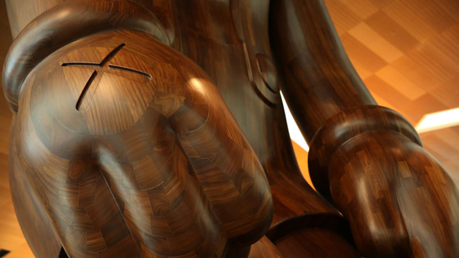 Tác phẩm của KAWS thường có kích cỡ cực lớn, người ta đã phải dỡ bỏ một bức tường của sân bay để đưa bức tượng này vào đây.