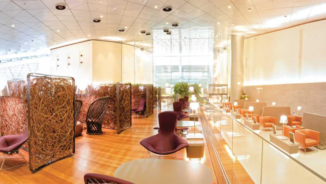 Các gian hàng riêng trong phòng chờ hạng nhất đi kèm với những chiếc ghế thoải mái như trong hình.