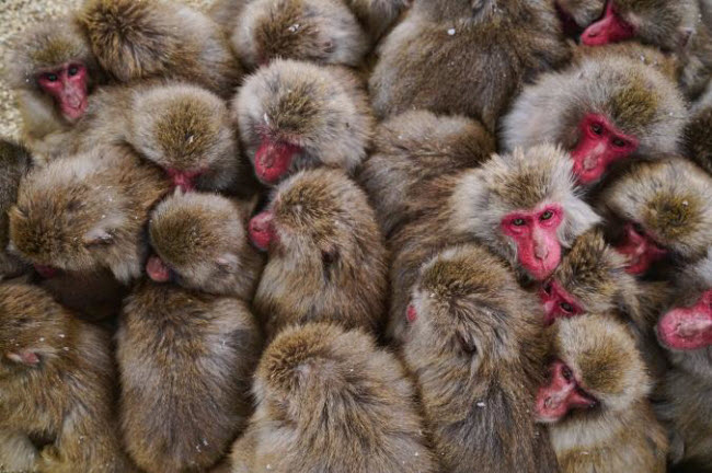 Ḥn đảo Shodoshima là địa điểm nổi tiếng ở miền tây Nhật Bản. Khi nhiệt độ xuống dưới 0 độ vào mùa đông, những con khỉ tuyết trên đảo tập hợp cùng nhau ngâm ḿnh dưới suối nước nóng để giữ ấm.