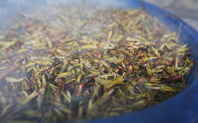 Ngoài các hộ đầu mối thu mua, hiện có khoảng 50 gia đình tham gia công việc sơ chế châu chấu ở xã Lê Thanh.
