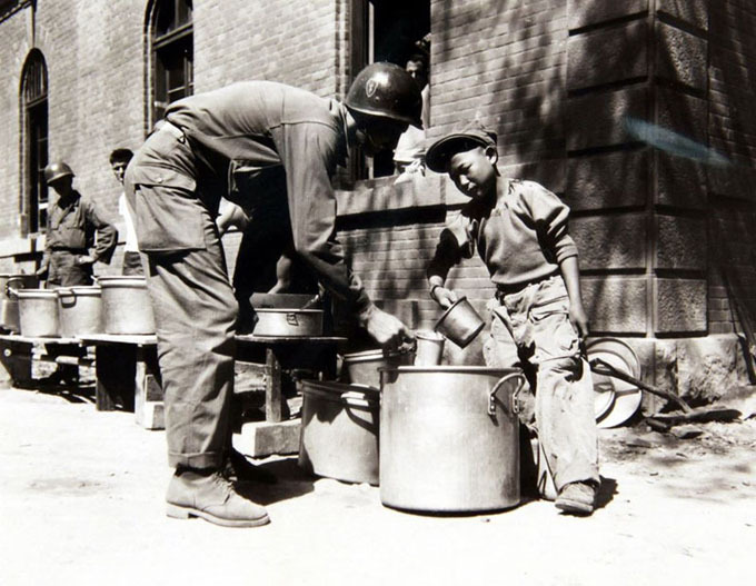 Bức ảnh cậu bé Triều Tiên rót cà phê cho lính Mỹ được chụp ngày 23/9/1950.