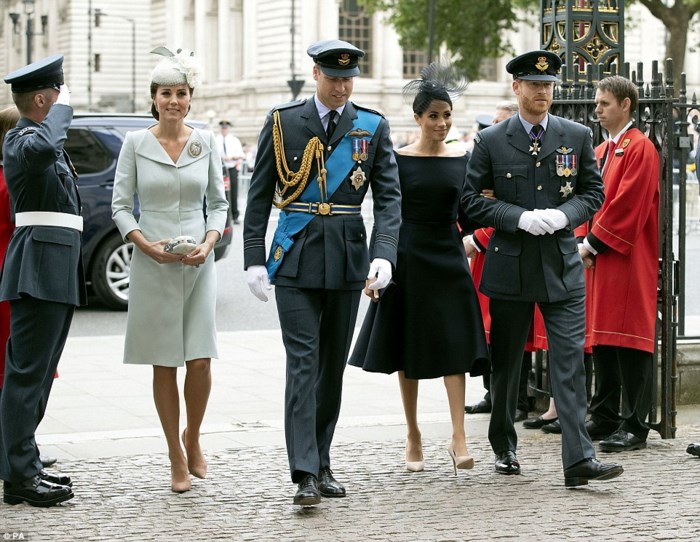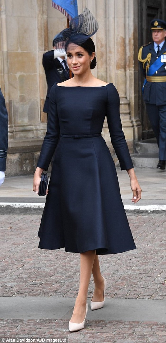 Mới đây, vợ chồng Công nương Meghan Markle và vợ chồng Công nương Kate Middleton đã có mặt tại Tu viện Westminster để tham gia buổi lễ kỷ niệm 100 năm Không quân Hoàng gia Anh. Trong khi Công nương Kate lựa chọn đầm xanh nhẹ nhàng thì Công nương Meghan lại gây chú ý khi mặc đầm tông đen.
