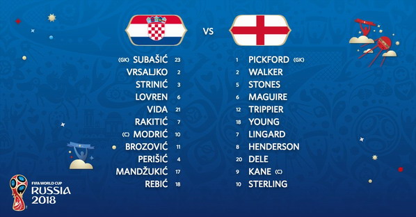 Croatia: Subasic, Vida, Lovren, Corluka, Strinic, Rakitic, Brozovic, Rebic, Modric, Perisic, Mandzukic.