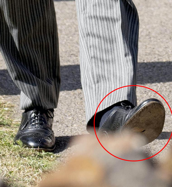 Đảm nhận vai trò phù rể, Công tước xứ Sussex mất điểm khi mang đôi giày có vết rách trên đế. Ảnh: PA Images.