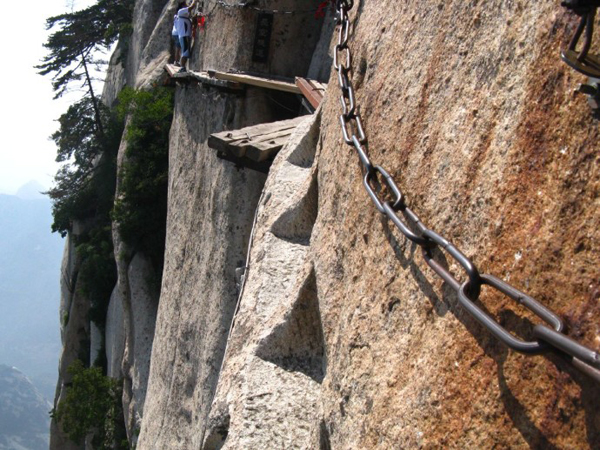 Những ai thích mạo hiểm vẫn thích đi qua con đường này dù đã có cảnh báo. Những người ưa thích cảm giác lạ buộc phải băng qua những nấc thang bằng gỗ sơ sài, hẹp và một sợi xích để bám vào mà không có hàng rào bảo vệ.