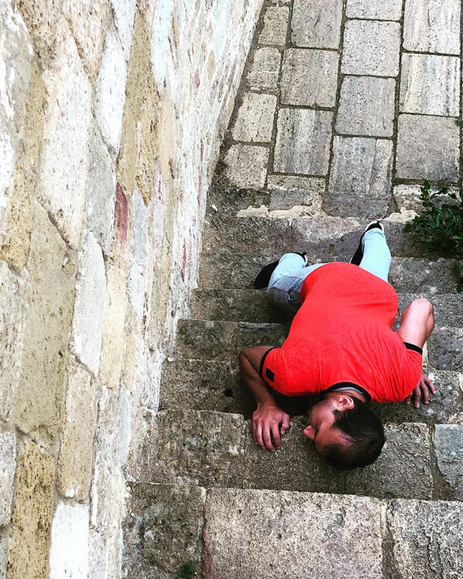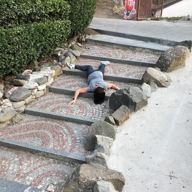 Cách hưởng ứng này sẽ khiến bức ảnh của bạn trở nên mới lạ, cá tính hơn nhưng rất dễ phản tác dụng. Nếu bạn không phải một người có khả năng bám trụ tốt hay không sở hữu vóc dáng nóng bỏng, tư thế lăn lê trên bậc thang sẽ khiến bức ảnh trở thành thảm họa.