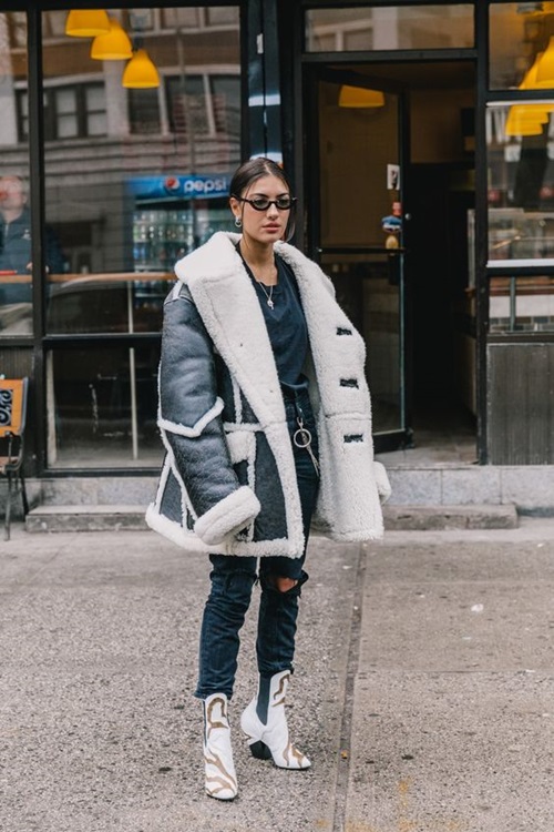 Lông cừu không chỉ là chất liệu mang lại sự ấm áp, dễ chịu cho người mặc trong mùa lạnh, nó còn là chi tiết trang trí giúp cho chiếc áo khoác thêm phần đắt giá, sang trọng. Một lưu ý nhỏ là áo khoác có gắn lông cừu thường trông khá cồng kềnh nên tùy thuộc vào vóc dáng mà bạn hãy phối đồ sao cho gọn gàng, đừng để áo khoác “nuốt” mất người nhé!