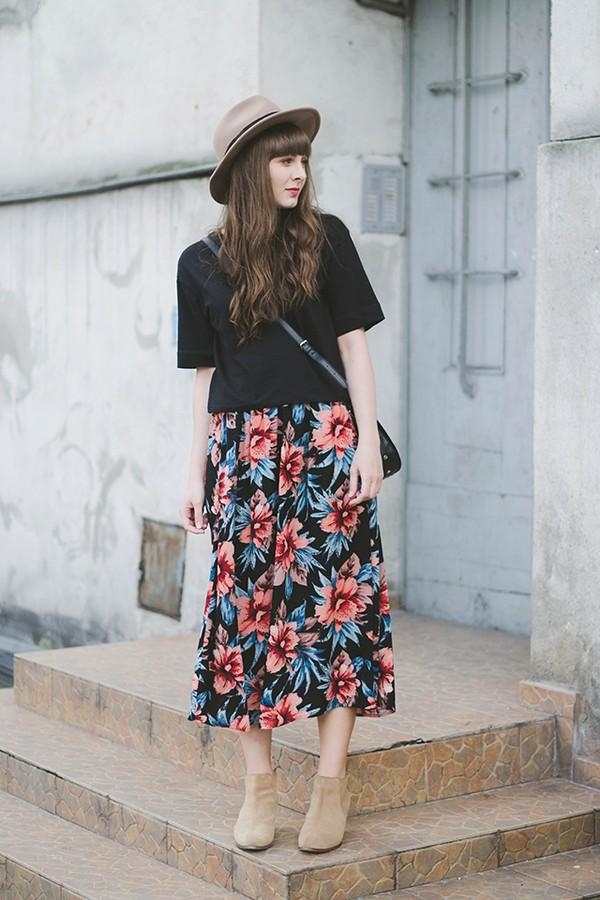 Trong mùa thu - đông, thật không công bằng nếu bạn vẫn cố gắng níu kéo mùa hè bằng những trang phục in hoa với màu sắc quá tươi tắn rực rỡ. Thay vào đó, hãy mang lại ánh nắng ấm áp bằng những họa tiết hoa trên nền đen của trang phục.