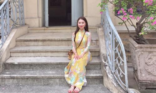 Một cô gái Hàn Quốc mặc áo dài chụp ảnh tại Bảo tàng Lịch sử Quốc gia ở Hà Nội. Ảnh: Instagram.