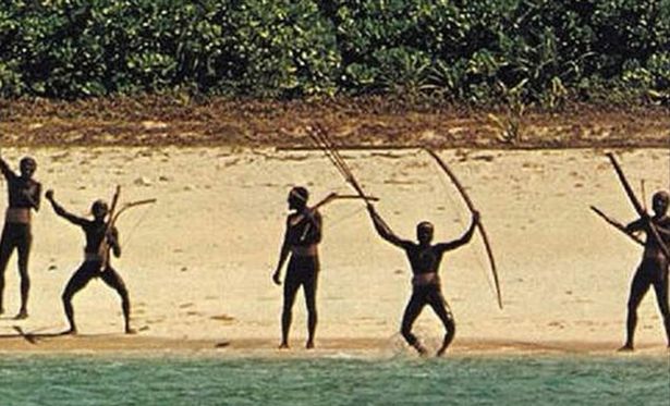 Một hình ảnh hiếm hoi về bộ tộc cư ngụ tại đảo Bắc Sentinel. Thổ dân ở đây được biết đến với tính cách hung dữ, bạo lực, từ chối giao tiếp với thế giới bên ngoài. Nhiều trường hợp người lạ chạm trán với bộ tộc này đều có chung kết cục bị giết hại.