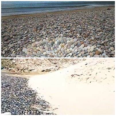 Tuy nhiên hàng trăm tấn cát đã lấp một đoạn dài bãi đá 7 màu tuyệt đẹp, sóng biển cuốn lượng cát khổng lồ nói trên phủ khắp nơi trông xấu xí và vô cùng tồi tệ.