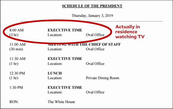 Axios đưa tin hồi tuần trước, trong vòng 3 tháng qua, 60% lịch trình của ông Trump là “thời gian điều hành” và họ dẫn lời các trợ lý của ông Trump nói rằng đây là khoảng thời gian ông thường dùng để xem tivi, liên lạc với bạn bè và lên mạng xã hội.
