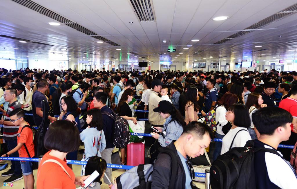 Nhiều hành khách cho rằng Tân Sơn Nhất đang “tắc từ ngoài vào trong” và thâm chí tắc từ mặt đất lên trời. Ảnh: Lê Quân.