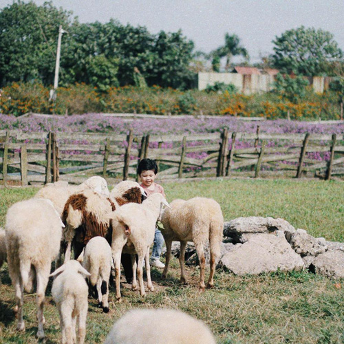 Đây là phim trường để chụp ảnh nên không gian rất rộng rãi. Chị Nhung thường cho con đến vào buổi chiều, khi trời mát mẻ. Tại đây, trẻ con có thể chơi với cừu, phí là 50.000 đồng một lượt, không giới hạn thời gian chơi. Tuy nhiên, chỗ này lúc nào cũng rất đông người. Ưu điểm là cừu hiền, nên an toàn để trẻ con chơi.