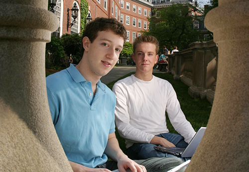 Mark Zuckerberg (bên trái) và Chris Hughes tại Đại học Harvard. Ảnh: BI.