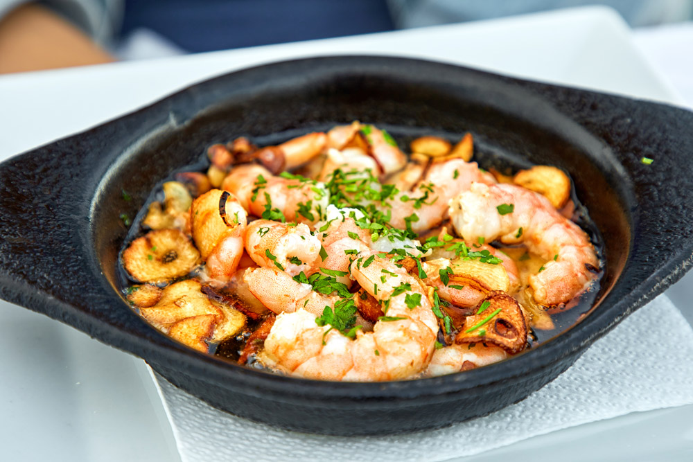 Gambas ajillo ở Tây Ban Nha rất ngon. Đầu bếp sử dụng một ít tôm tươi, nấu chúng trong dầu ô liu với tỏi và ớt, và trong khoảng 10 phút, bạn sẽ có một trong những món ăn ngon nhất.