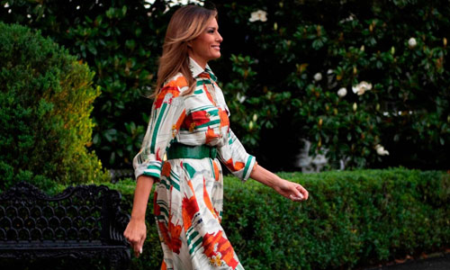 Chiếc váy Melania mặc khi lên chuyên cơ tới Anh. Ảnh: Reuters.