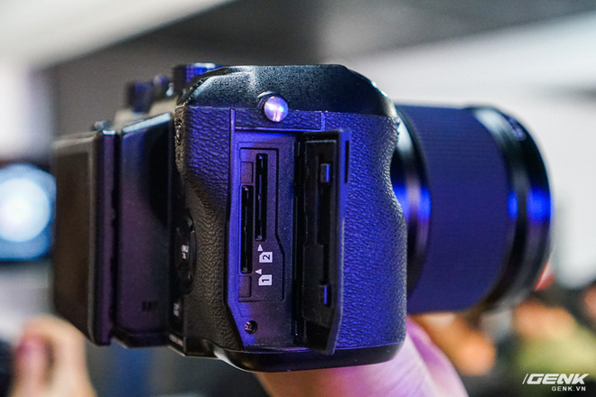 Ống ngắm điện tử EVF có thể tháo rời tuỳ theo điều kiện sử dụng của người dùng, nếu thích nhỏ gọn có thể tháo ra, còn khi gắn vào sẽ xoay đa hướng dễ dàng theo từng góc chụp.