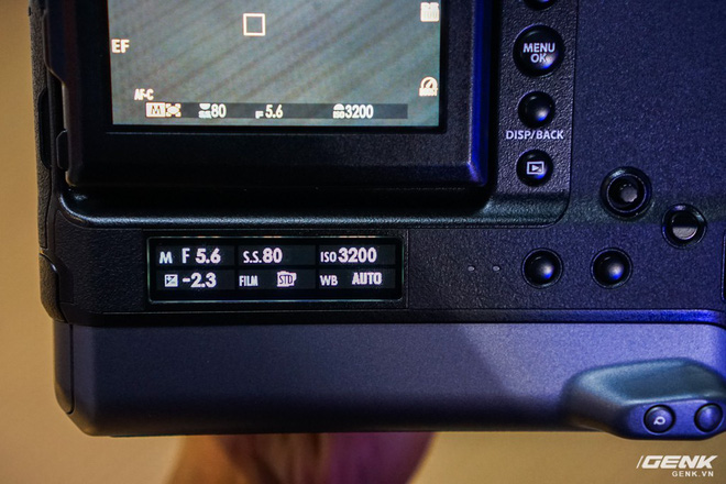 Mặt sau có màn hình hiển thị 3.2 inch độ phân giải 2.36 triệu điểm.