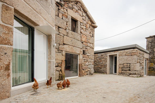 Nhìn bề ngoài, căn nhà khá thô sơ với những bức tường xếp đá.