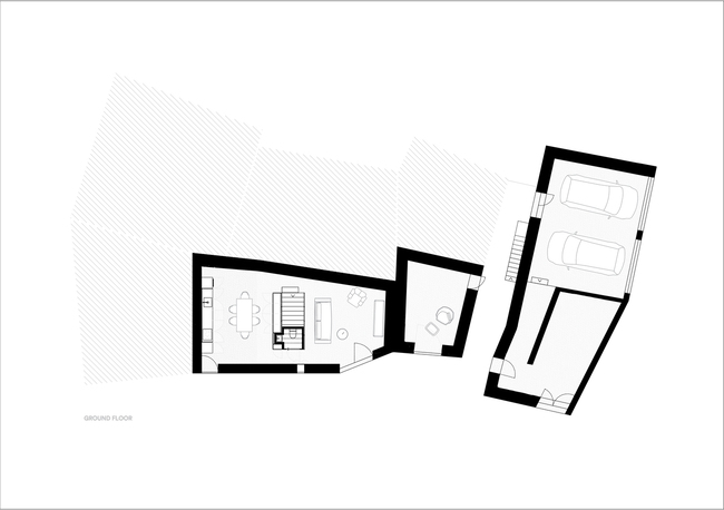 Ngôi nhà gồm phần nhà chính, gara ô tô và nhà kho tách biệt nhau