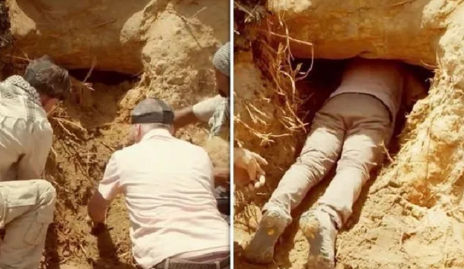 Nhóm khảo cổ tiếp tục tìm thấy dấu vết của một ngôi mộ cổ, nhưng đường vào rất hẹp, chỉ vừa đủ cho một người lớn chui vừa.